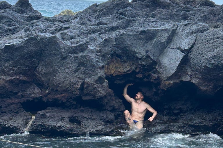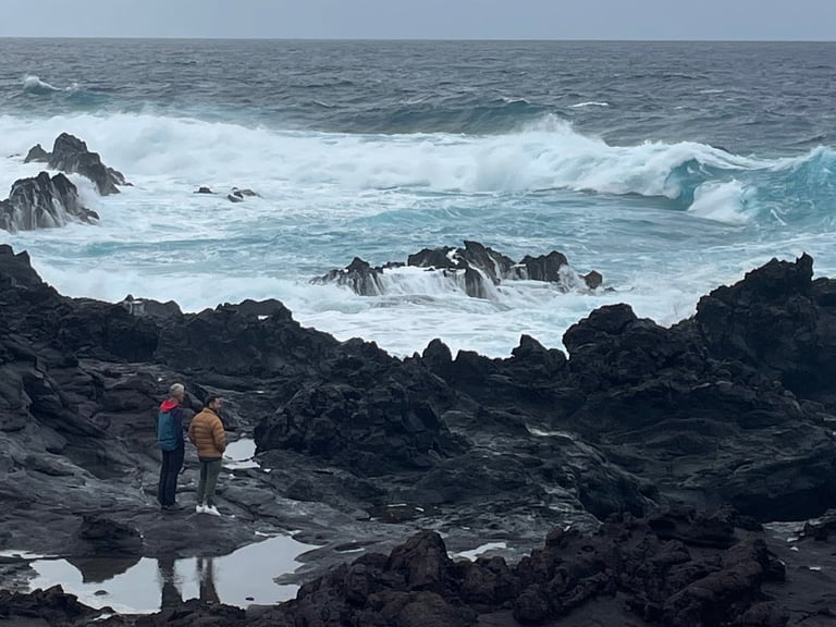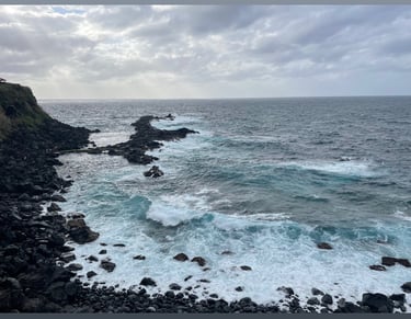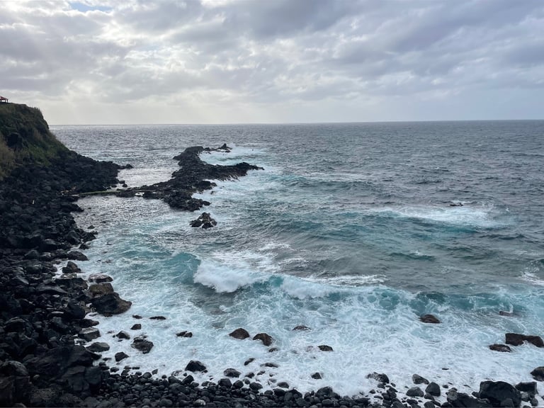 When I read the plaque—“When the lava reached the sea”—I stopped. It said that the force of the waves and salt shapes the different types of lava rock that form along the coast. I imagined the collision: black stone meeting the endless movement of water, the sharp rock softened and reshaped over time. It’s an image of impact, but also of patience.